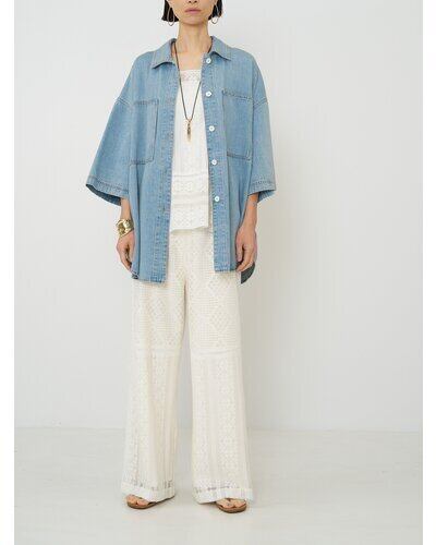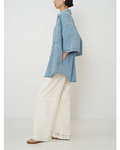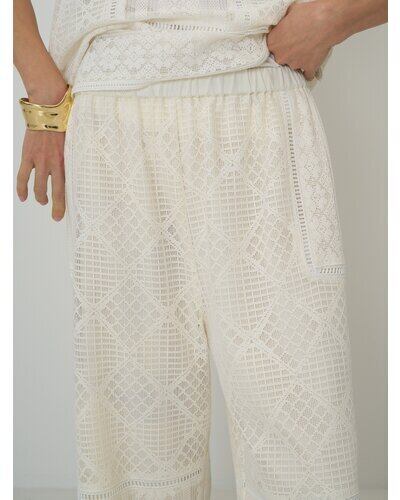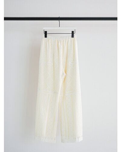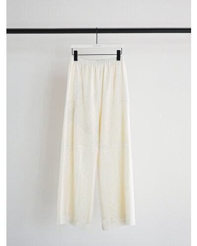 三種類のレースをパッチワークさせて作ったクラフト感あふれるデザインワイドパンツ。