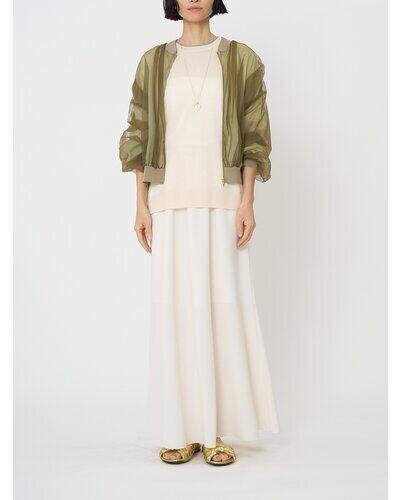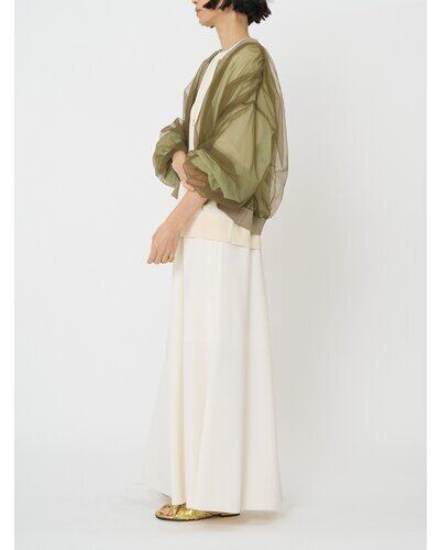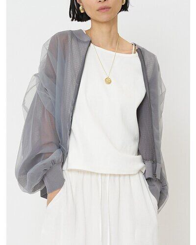 透け感の奥行きで立体感が生まれ、羽織るだけでスタイリングが新鮮な表情に。