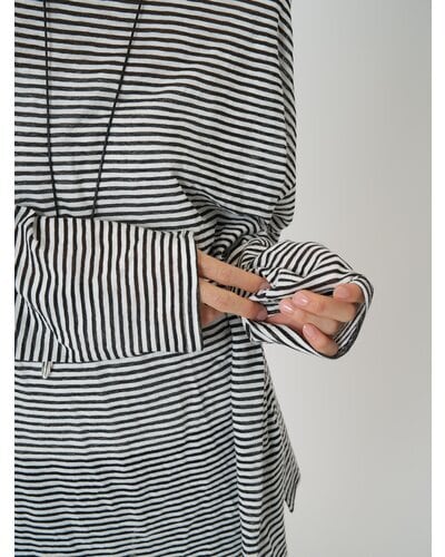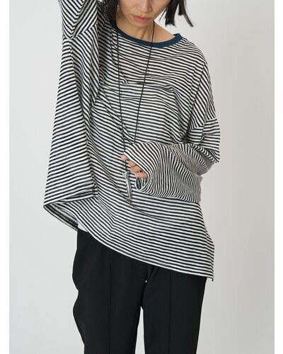 シンプルなボーダー柄は、デニムやスラックスなどどんなボトムとも好相性です。また、トップスのインナーとしてチラ見せレイヤードスタイルもおすすめです。