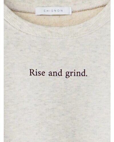 胸元には小さく”rise and grind"立ち上がり、(今日も)頑張ろう”プリントを施し、ミニマルながらも上品で印象的なデザインに仕上げています。