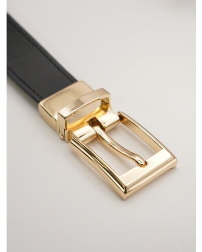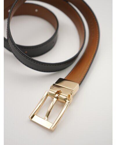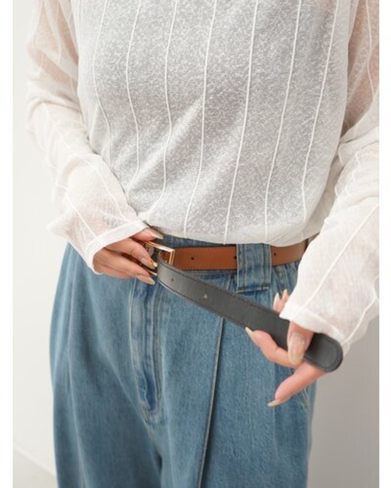 バックルを180度回転すると表裏両面使えるリバーシブル仕様の2WAYベルトです。1本で2本分楽しめるので、その日の気分やコーディネートに合わせてご使用いただけます。お色はブラウン×ブラック、形もシンプルなので様々な洋服に合わせやすい万能ベルトとなっております。ブラウン面には「CHIGNON」の押印入り。