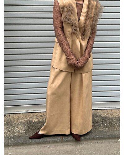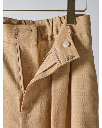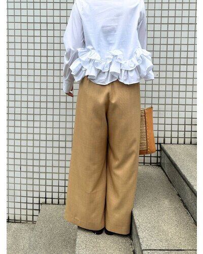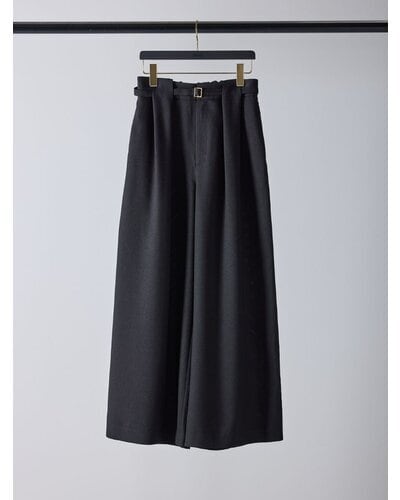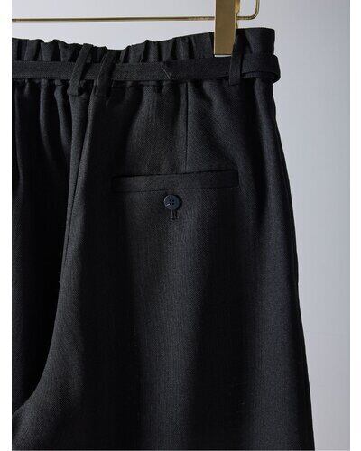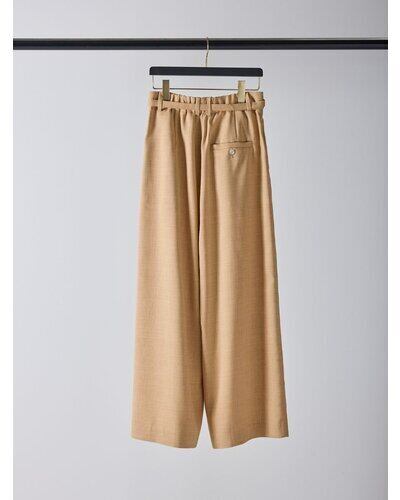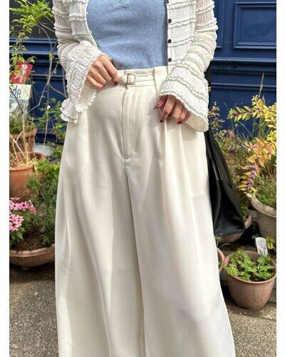 共布ベルトをタック奥に通した立体的なデザインで、シンプルながらも一枚でコーデが決まるワイドパンツ。