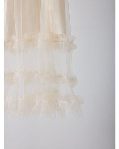 たっぷりとチュールを重ねたティアードスカートは、下の段にボリュームを集めることで、