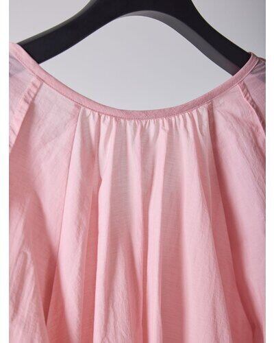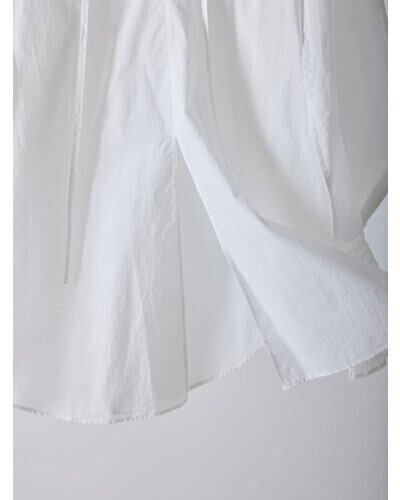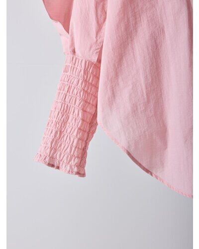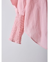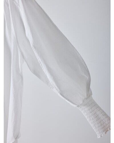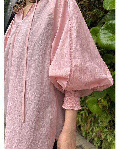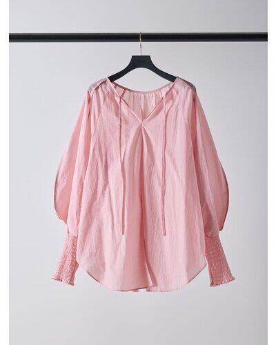 長めのカフスをシャーリングで仕上げ、たっぷりとしたボリューム袖を引き立てたチュニックブラウス。