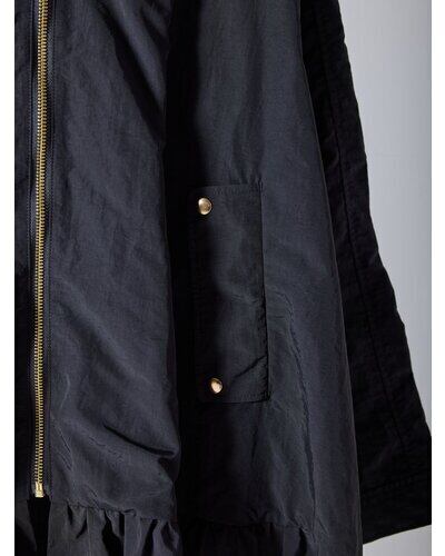 軽やかなナイロン素材を贅沢に使用し、裾にはたっぷりとフリルをあしらって大人の可愛さをプラス。