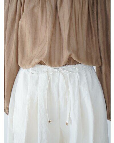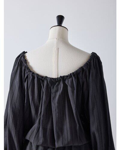 トップスはシアーなストライプ素材を使用し、ほんのり透ける上品さをプラス。