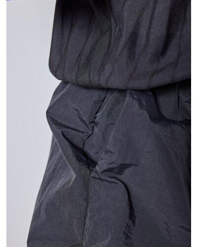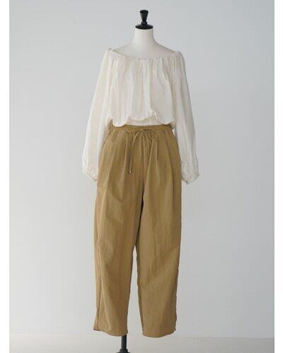 パンツはナイロン素材のカーヴィーシルエットで、モードな抜け感を演出。