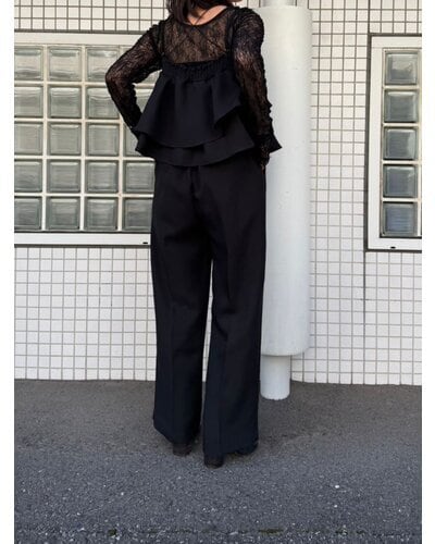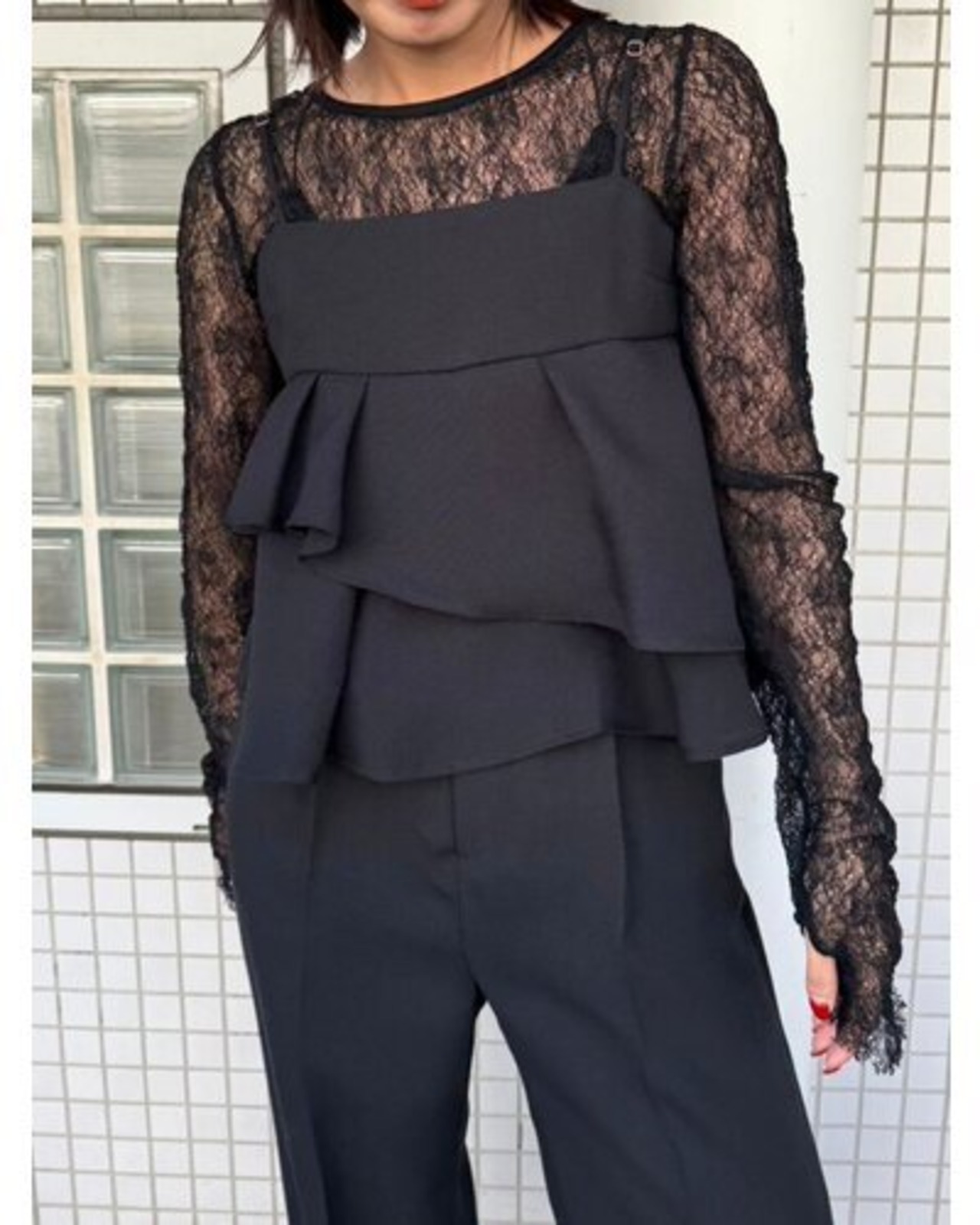 アシンメトリーにデザインされたフリルが、甘すぎず大人なアクセントに。