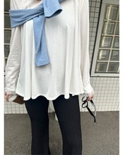 肌触りの良いカットソー素材で着心地は抜群ながら、ふんわりと広がるシルエットがカジュアルになりすぎず上品な印象に。