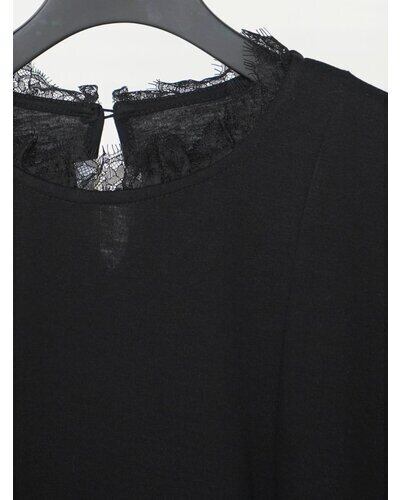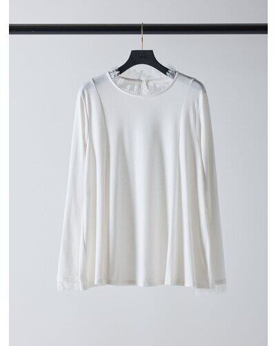 「繊細なレースが引き立つ、大人のフレアTシャツ。」