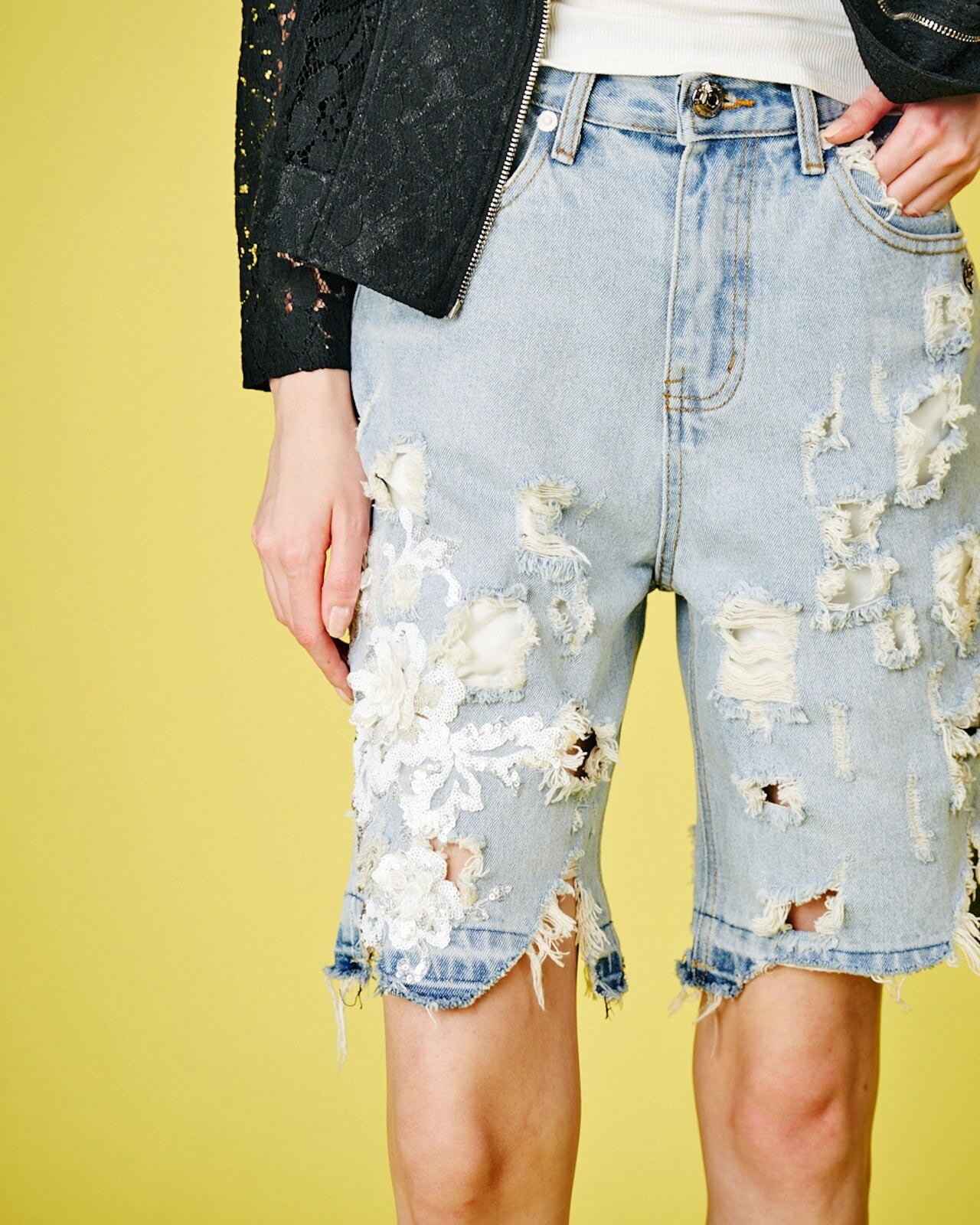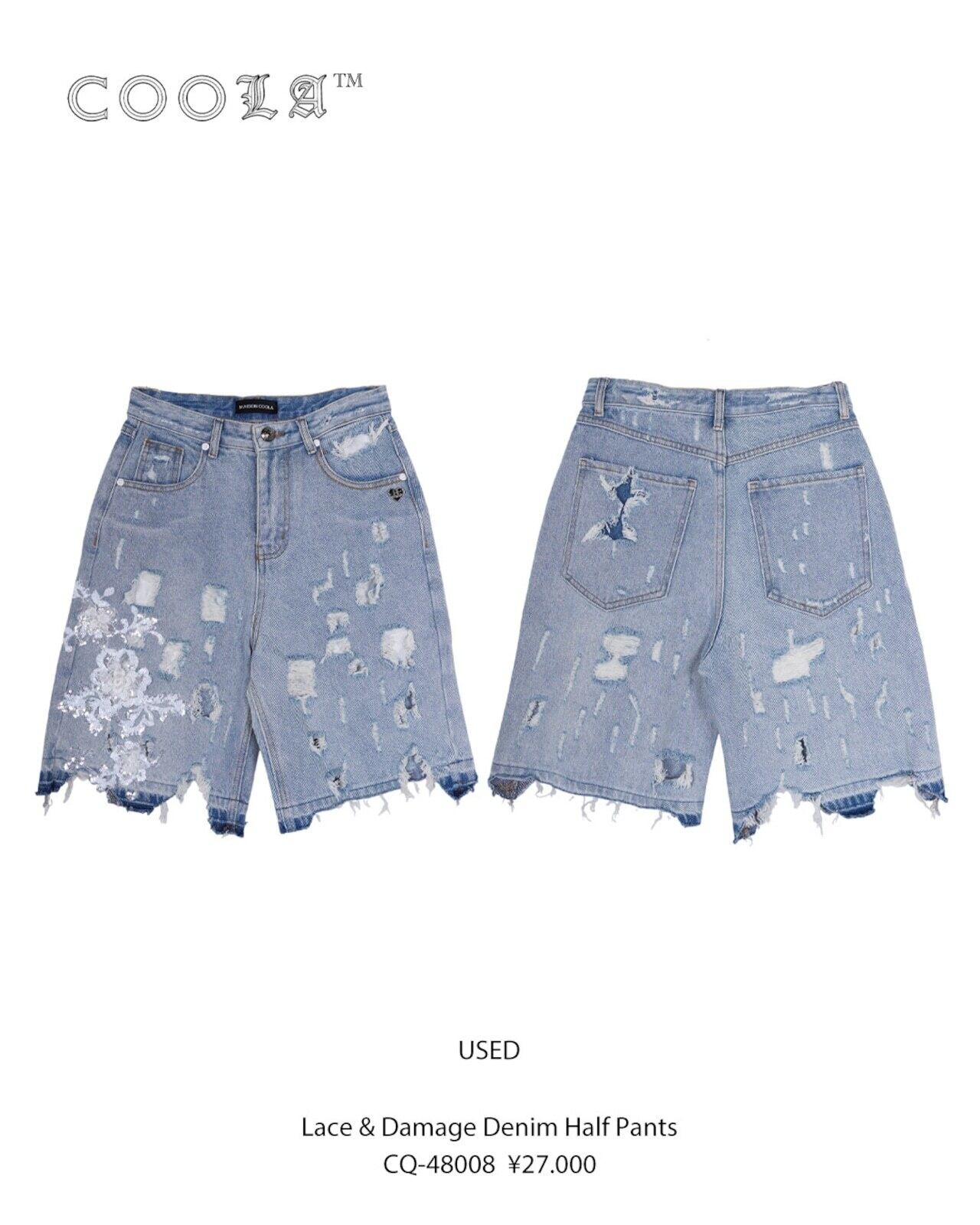 予約販売【 COOLA 】Lace × Damage Denim Half Pants (CQ-48008) 2月入荷お届け
