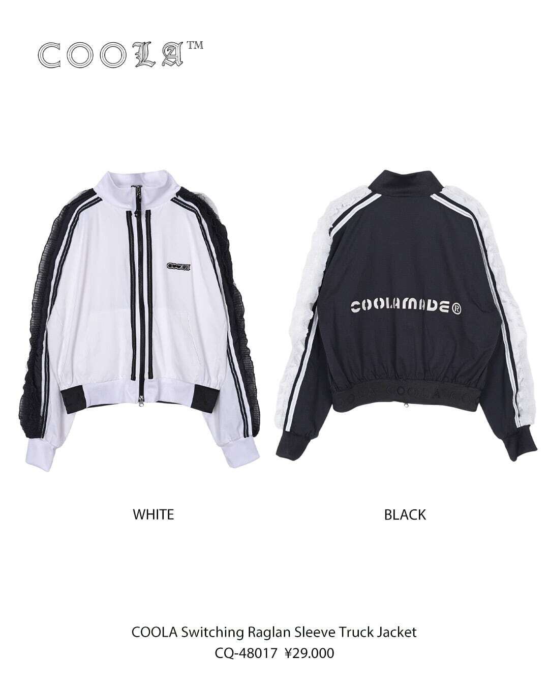予約販売【 COOLA 】COOLA Switching Raglan Sleeve Track Jacket (CQ-48017) 2月入荷お届け