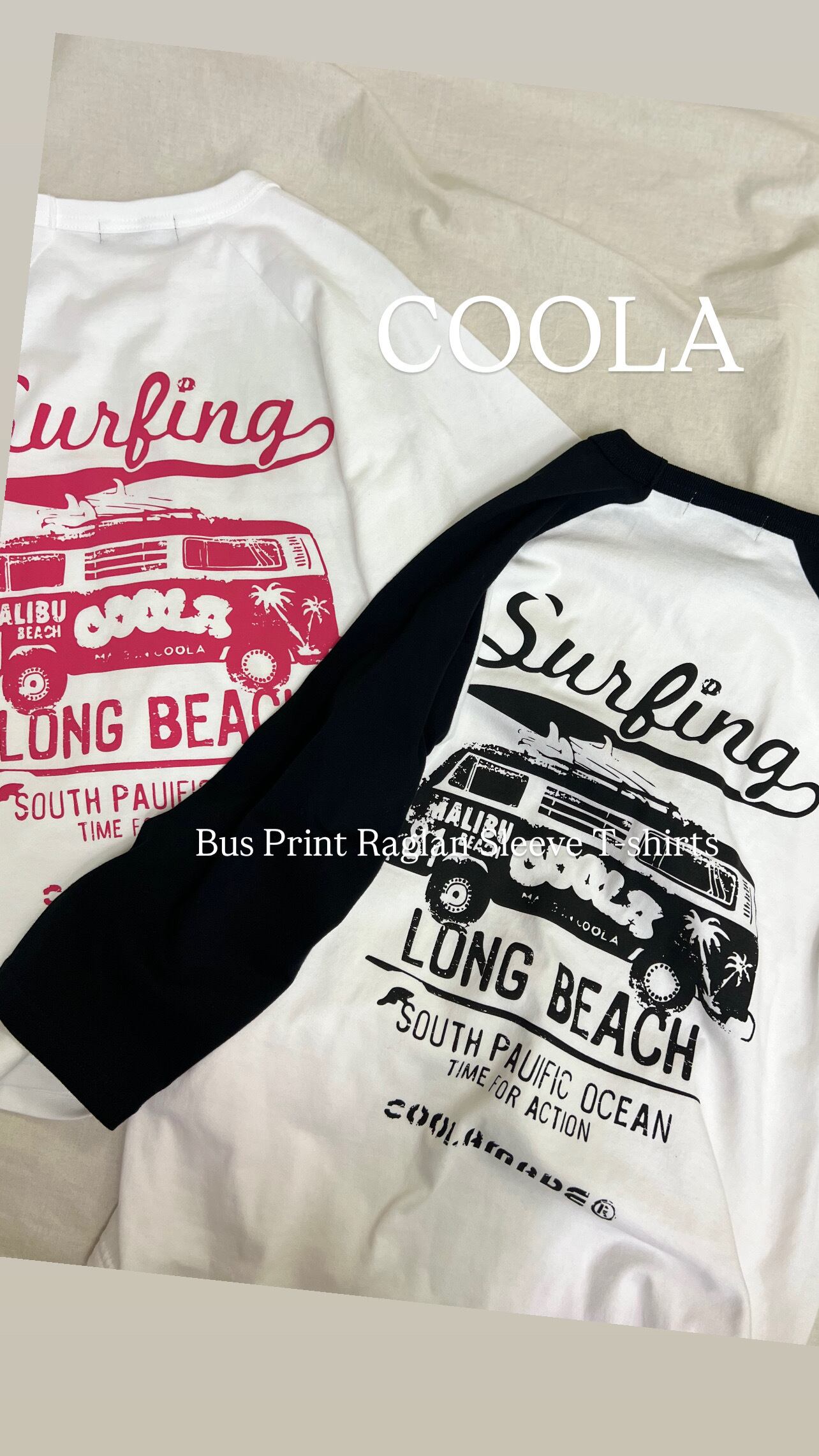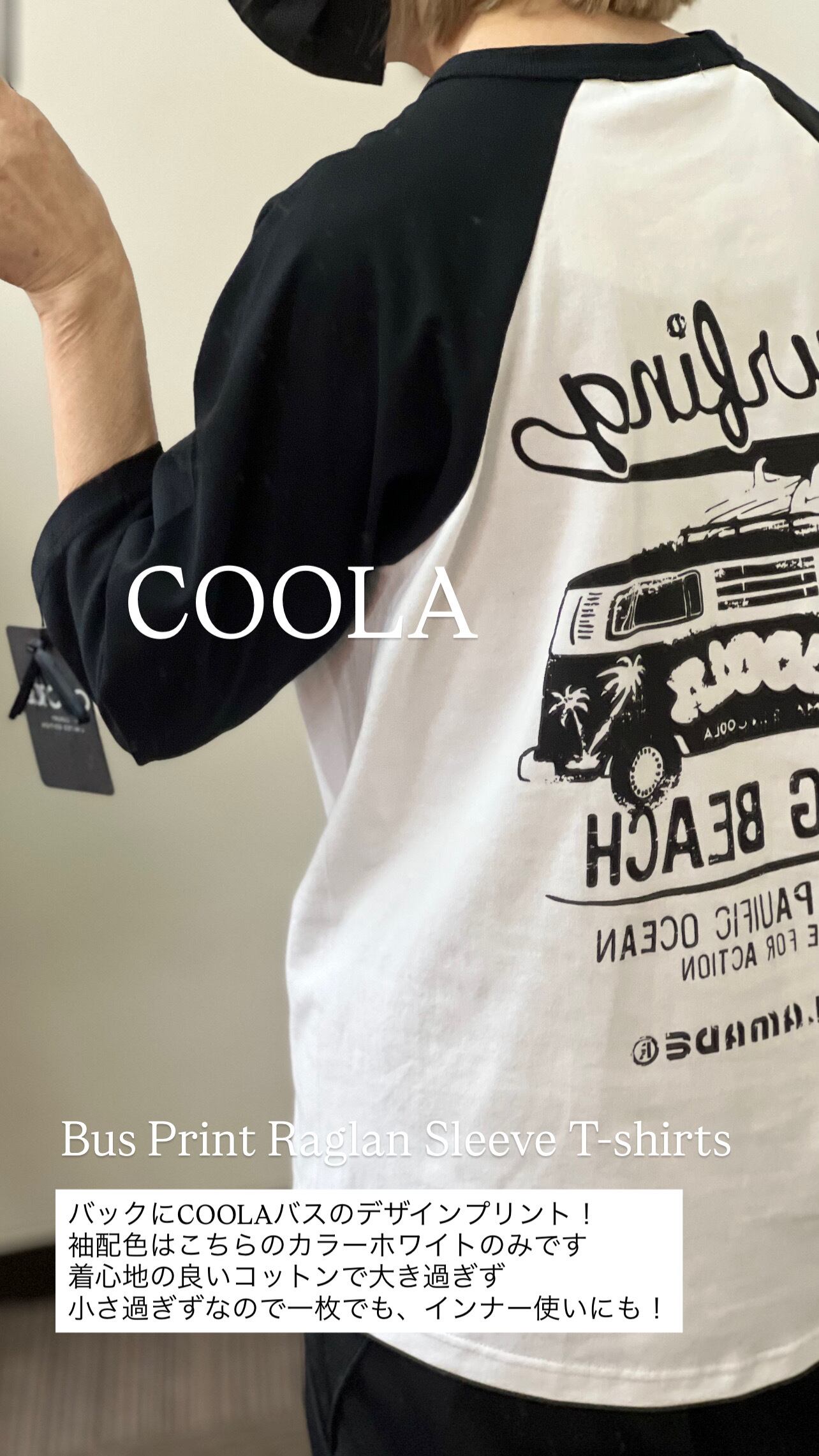 予約販売【 COOLA 】COOLA Bus Print Raglan Sleeve T-shirts (CQ-48025) 2月入荷お届け