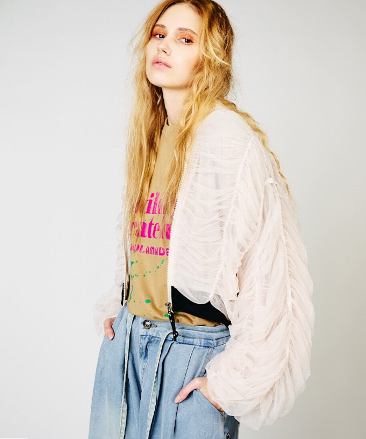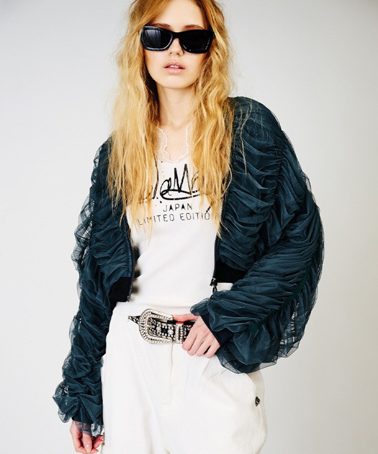 Tulle Gather Cropped Blouson