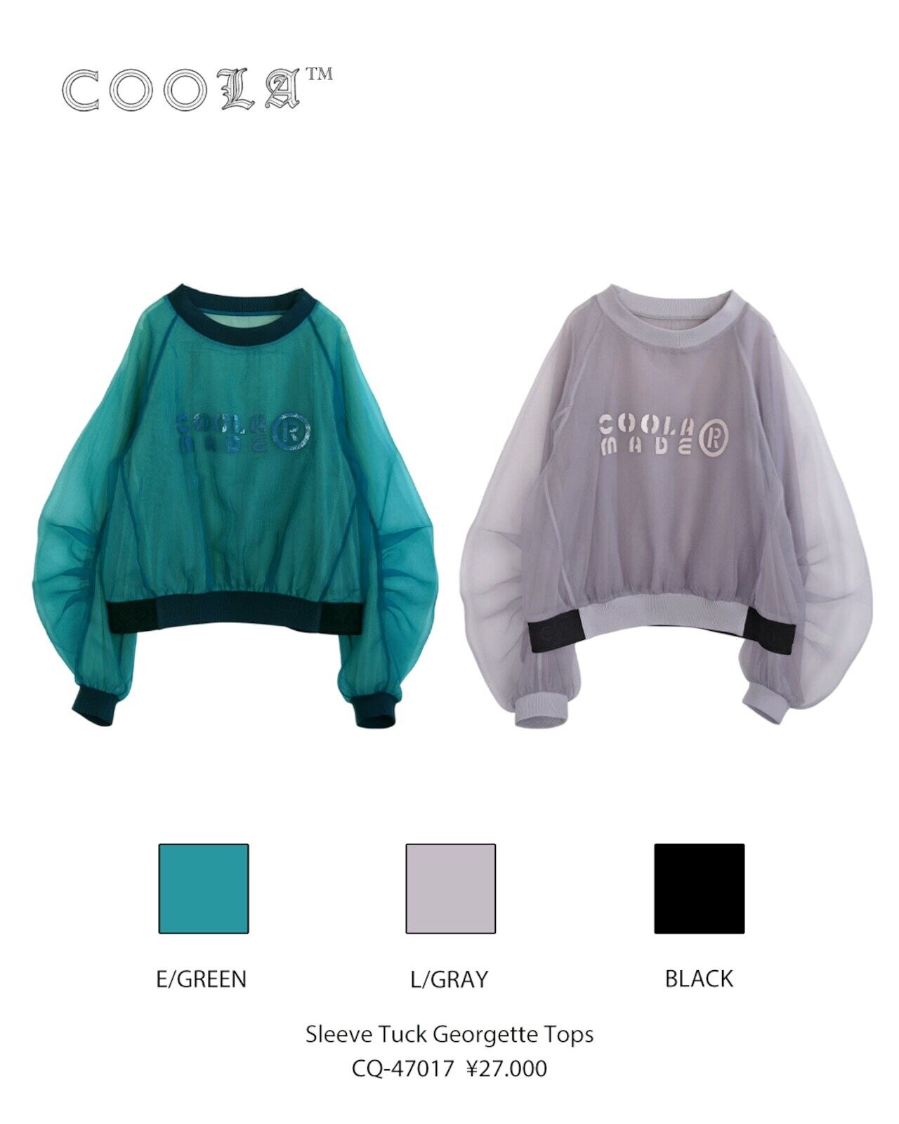 予約販売【 COOLA 】Sleeve Tuck Georgette Tops (CQ-47017) 3月入荷お届け