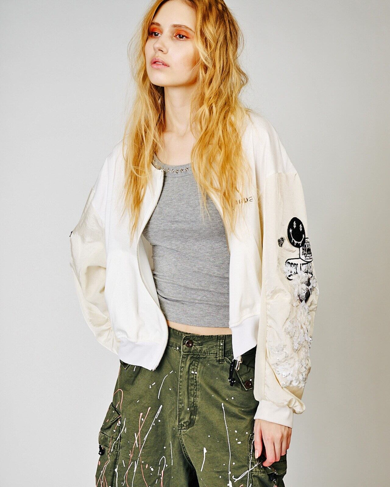 ・後ろ裾にはロゴ刺繍入りリブを使用し、