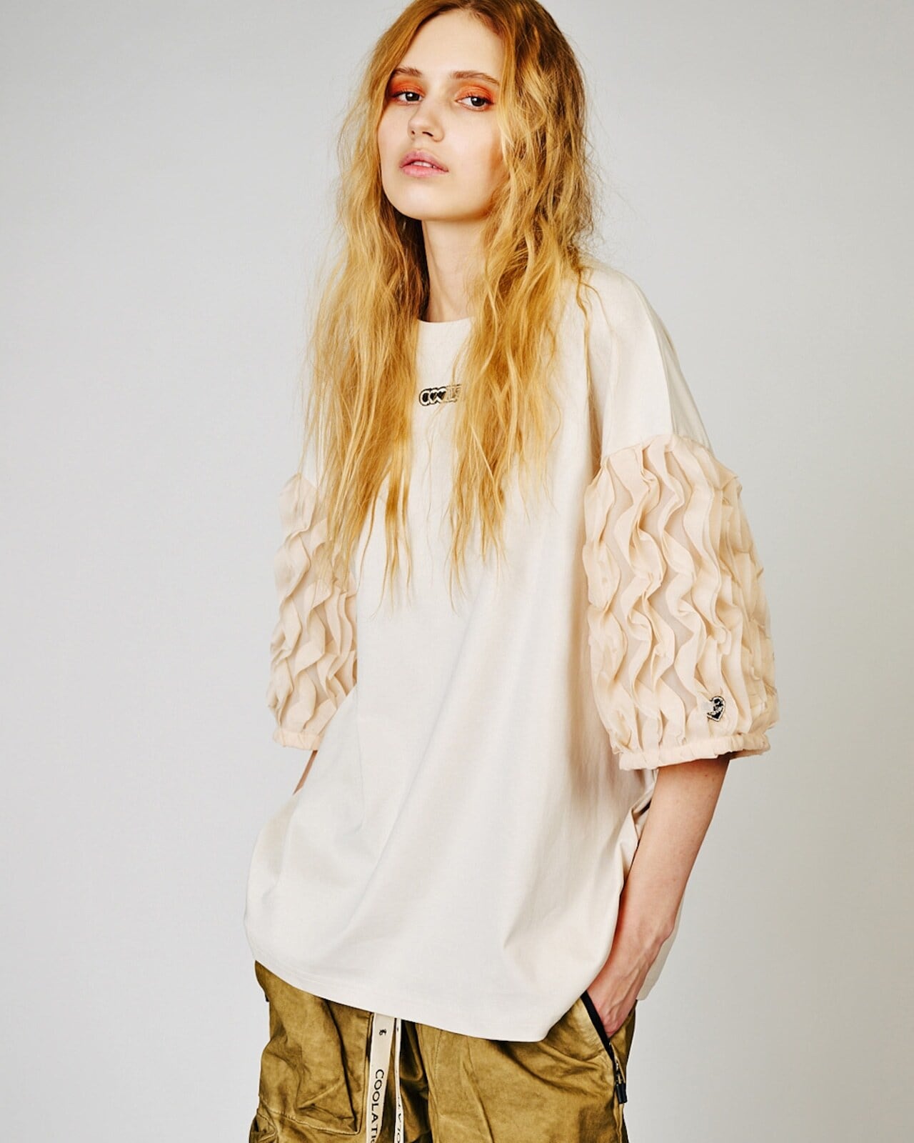 予約販売【 COOLA 】Frill Sleeve Loose T-shirts (CQ-48031) 3月入荷お届け