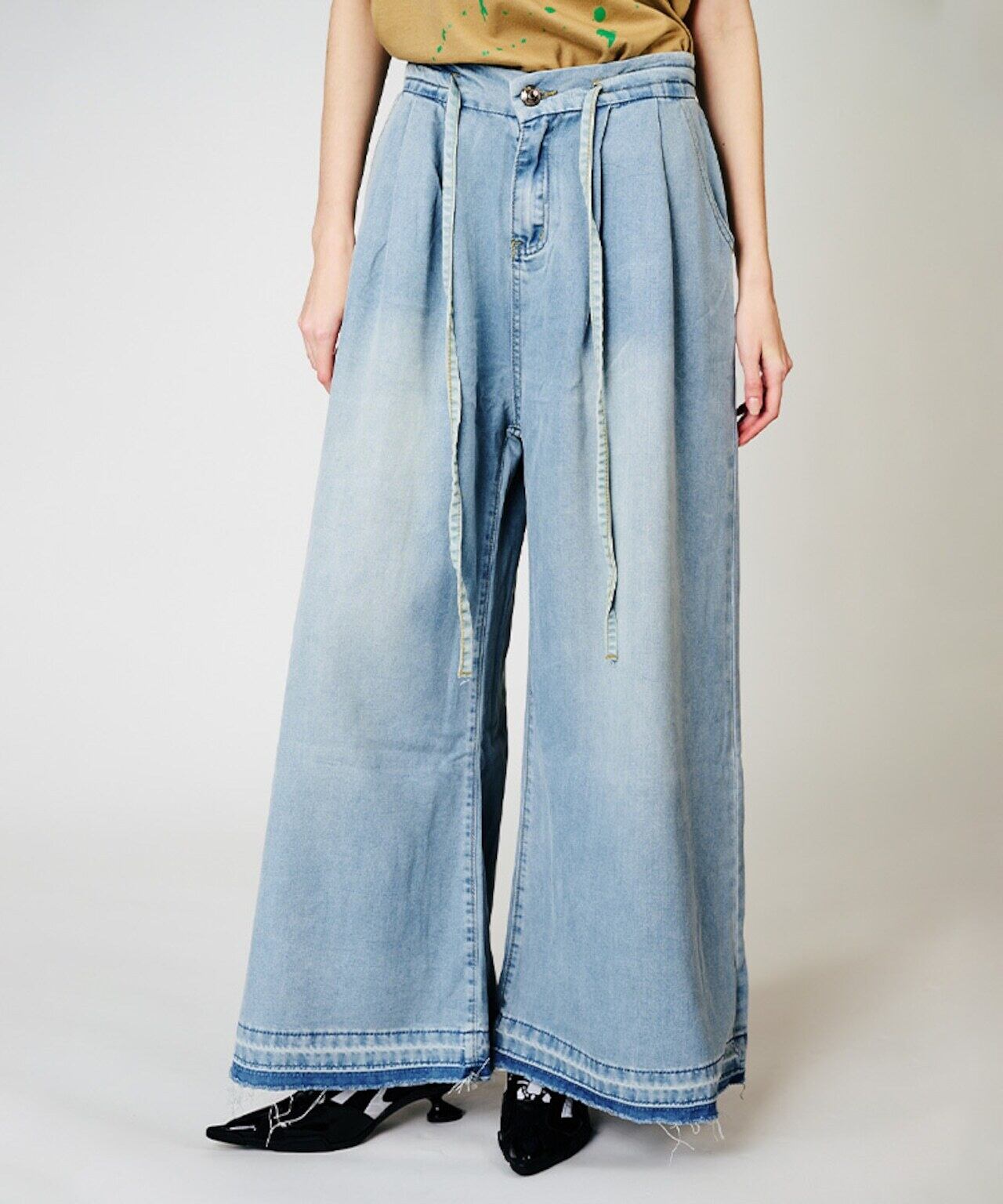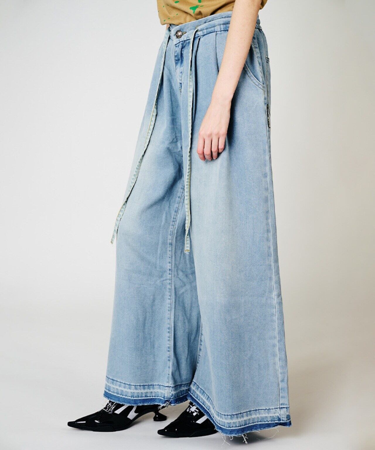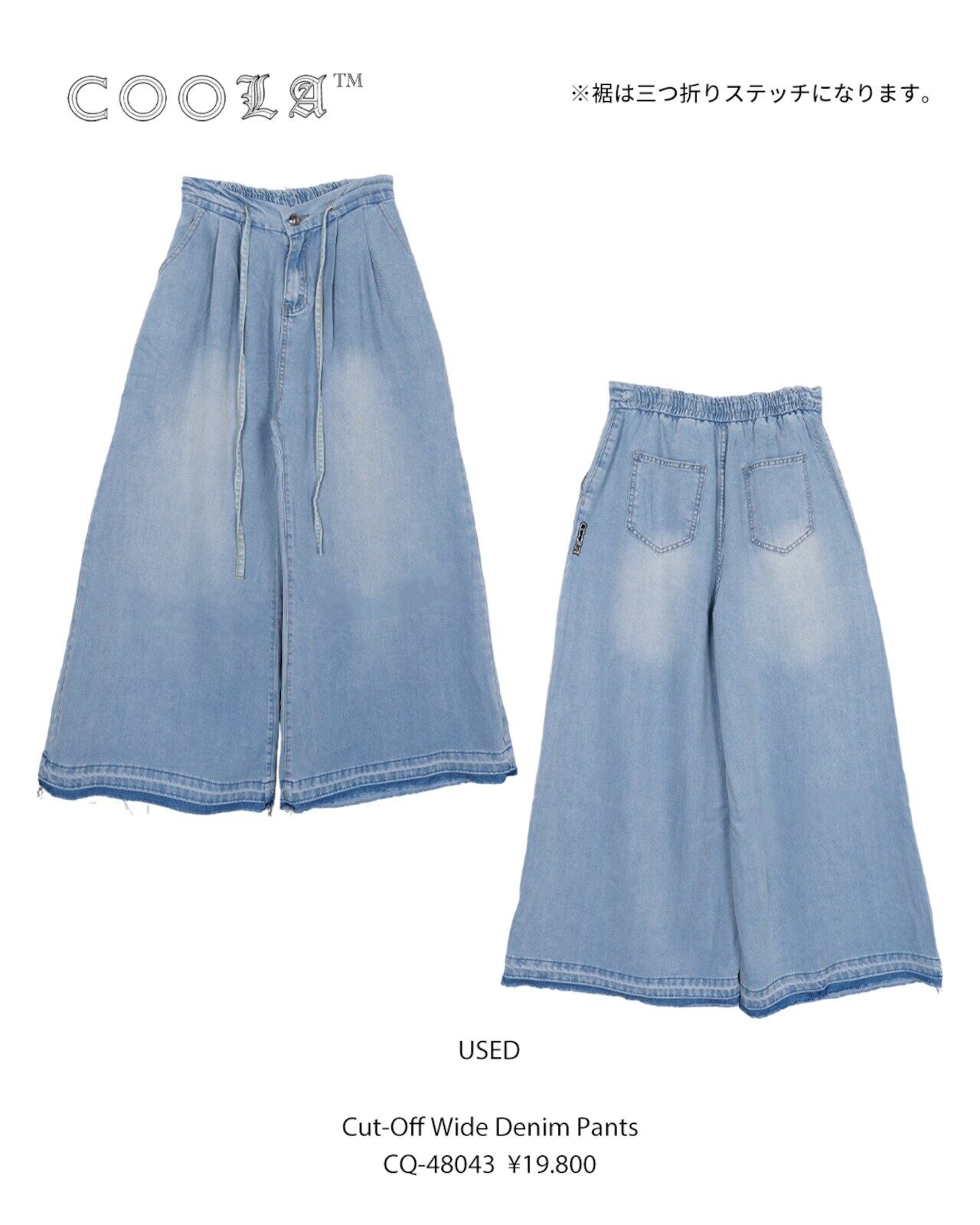 予約販売【 COOLA 】Cut-off Wide Denim Pants (CQ-48043) 3月入荷お届け