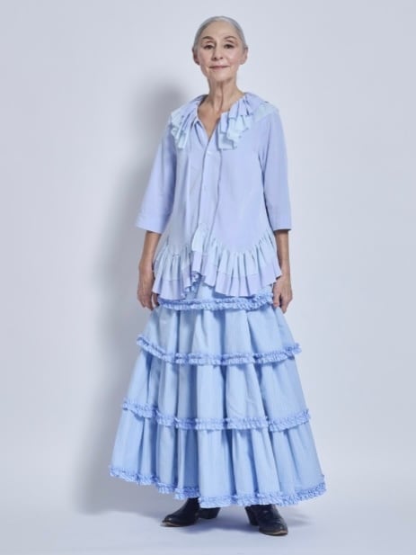 オリジナルプリントスカートは大きめ。