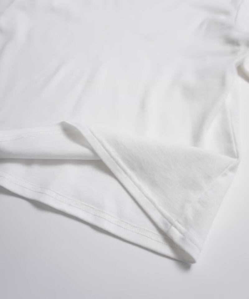 実際、私もオーバーサイズのトップスが多かったので、バランス的に小さめが欲しいなと思い作りました。丈夫なコットン100%で長く愛用できるカットソー。ボトムが大きめの日などのバランスをとるのに便利かなと思いました。最近はオーバーサイズばかりの上下の組み合わせよりも、どちらかがタイトなシルエットも提案していきたいなと思っています。久しぶりにとても良いカットソーなので、今回は白、黒の2枚購入をしたいと思っています。とても使えると思います。