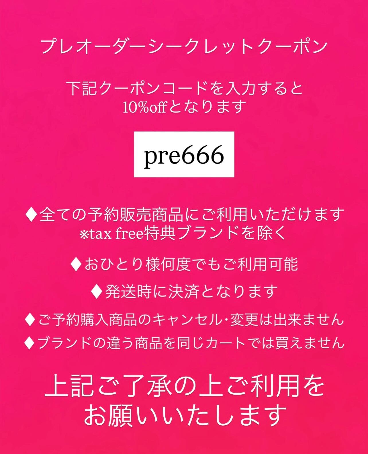 (クーポンは全ての予約販売にご利用いただける共通クーポンとなります※tax free特典のブランドを除く)