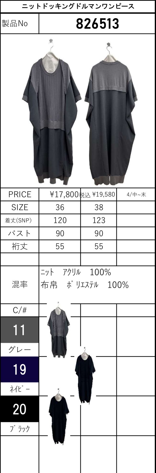 予約販売【 ayane 】ニットドッキングドルマンワンピース (826513) 4月中旬〜末頃入荷お届け 送料無料!