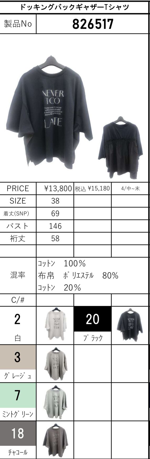 予約販売【 ayane 】ドッキングバックギャザーTシャツ (826517) 4月中旬〜末頃入荷お届け 送料無料!