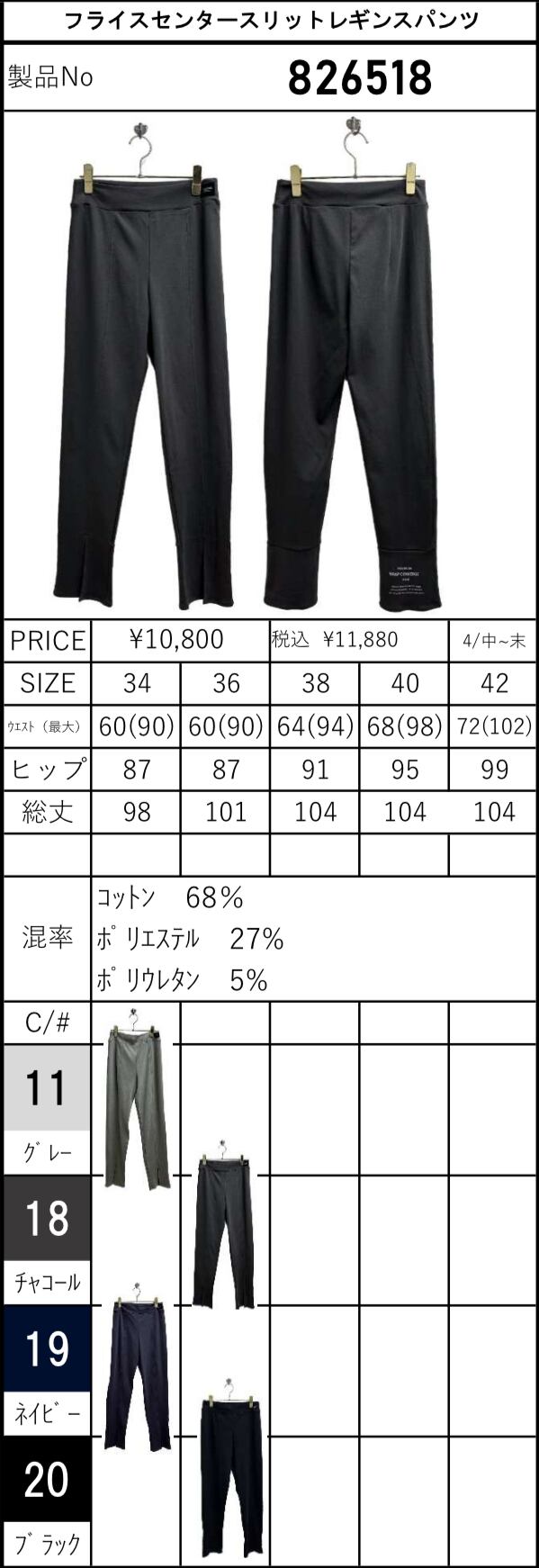 予約販売【 ayane 】フライスセンタースリットレギンスパンツ (826518) 4月中旬〜末頃入荷お届け 送料無料!