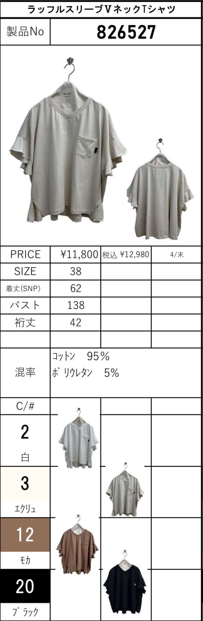 予約販売【 ayane 】ラッフルスリーブⅤネックTシャツ (826527) 4月末頃入荷お届け 送料無料!