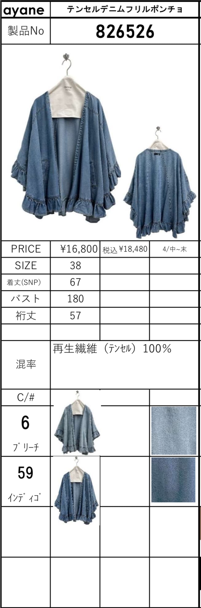 予約販売【 ayane 】テンセルデニムフリルポンチョ (826526) 4月中旬〜末頃入荷お届け 送料無料!