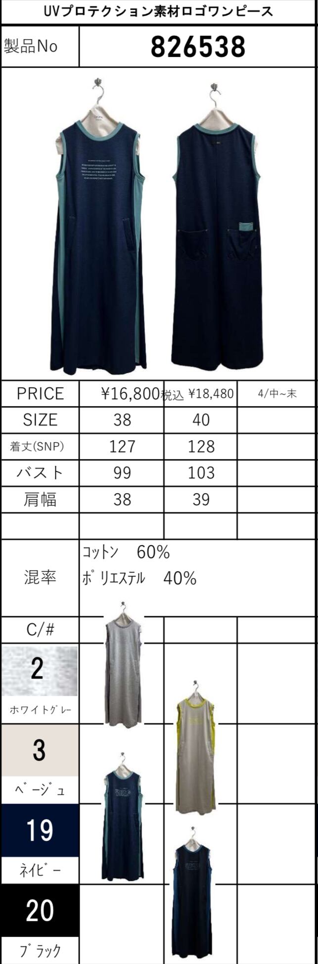 color No.2 ホワイトグレー/No.3 ベージュ/No.19 ネイビー/No.20 ブラック