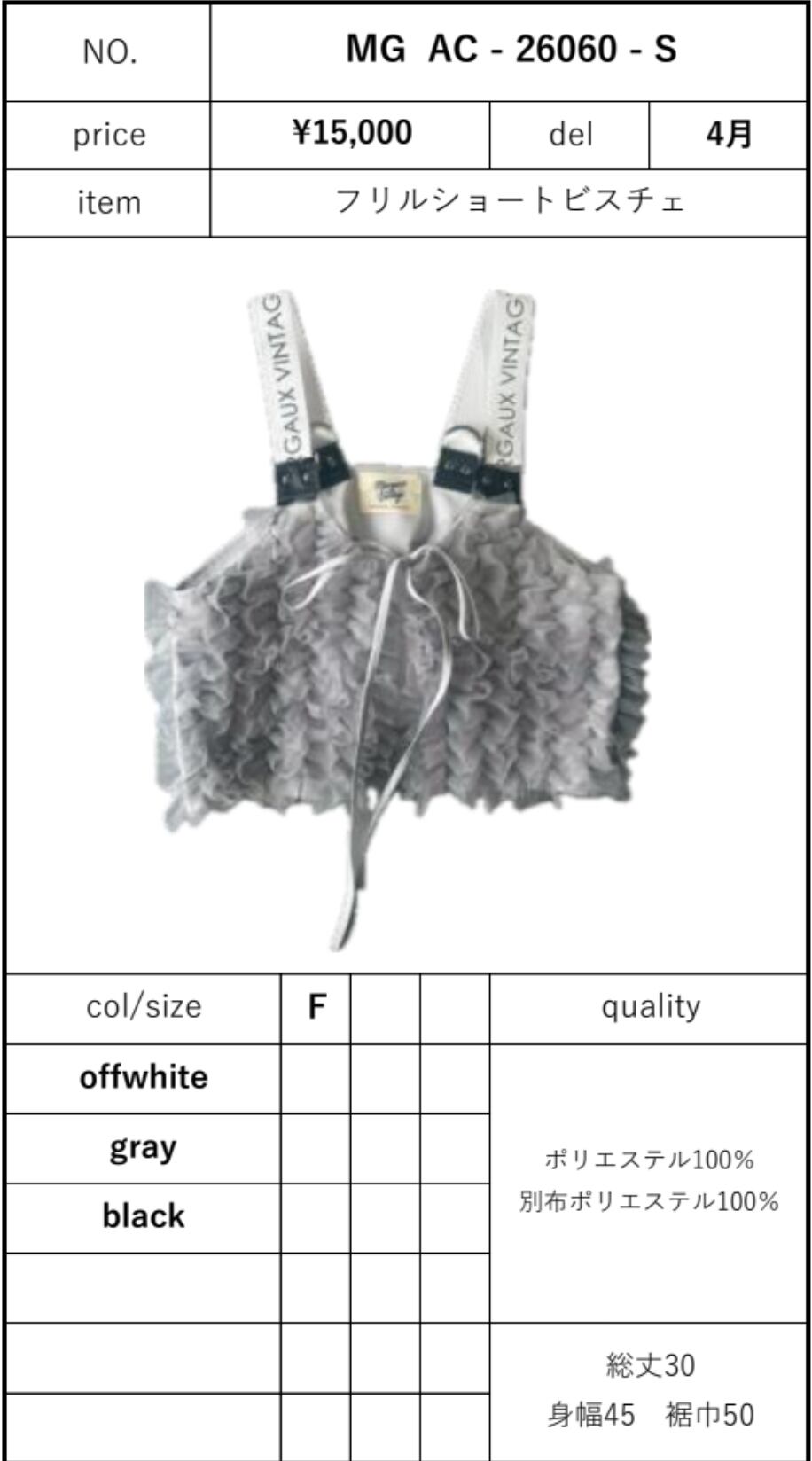 予約販売【 Margaux Vintage 】フリルショートビスチェ (26060) 4月旬頃入荷