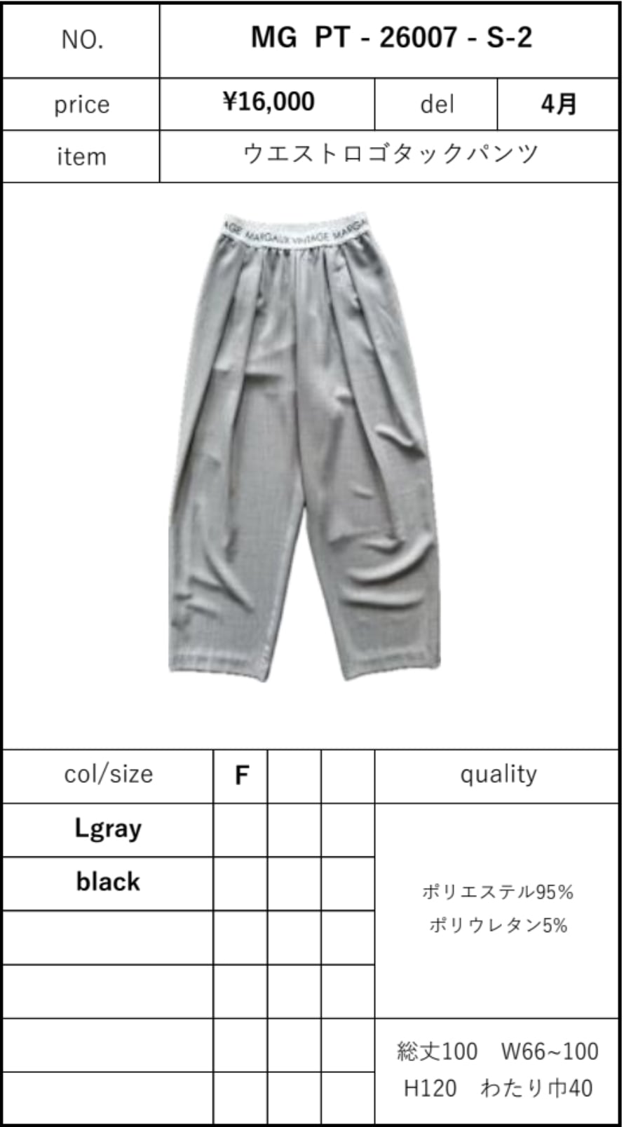 予約販売【 Margaux Vintage 】ウエストロゴタックパンツ (26007) 4月旬頃入荷