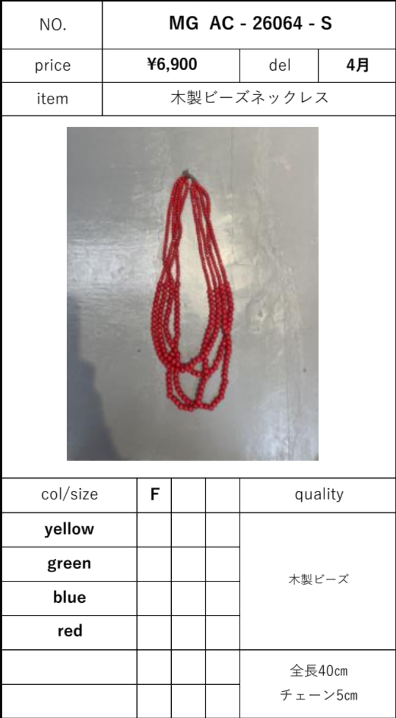 予約販売【 Margaux Vintage 】木製ビーズネックレス (26064) 4月旬頃入荷