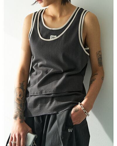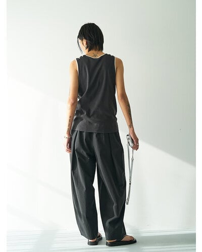 商品説明アメリカンコットン100%のクリーンな質感を活かした、アシンメトリータンクトップ。2枚のタンクトップをレイヤードしたような構築的デザインが、シンプルながら奥行きのある表情を演出します。外側のタンクトップは斜めにカットしたヘムラインと、わずかにずらしたネックラインが印象的。配色バインダーでトリミングしたタイプと、あえて配色を省いたミニマルなタイプを含む3色展開で、それぞれ異なるムードを楽しめます。胸元にはYENNのジャガードニットネームを配し、さりげないアイコニックなアクセントに。インナーとしてはもちろんトップスとしても活躍する1着です。