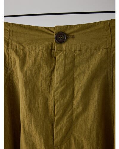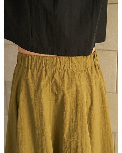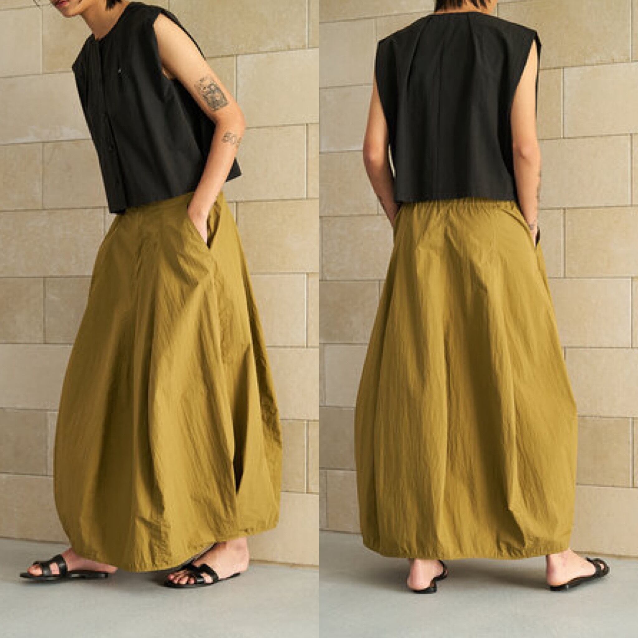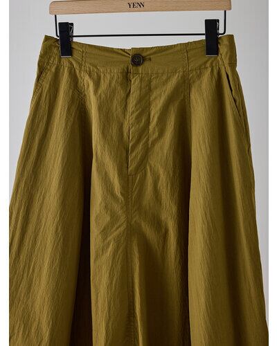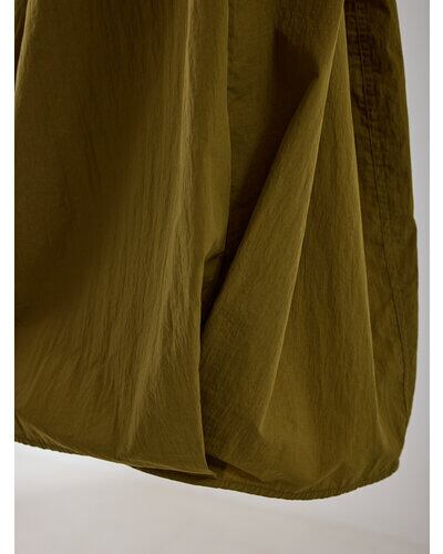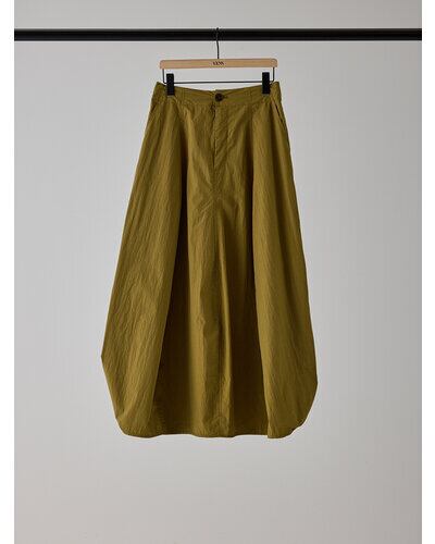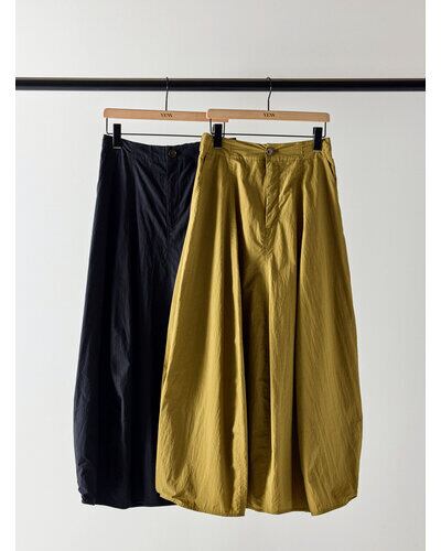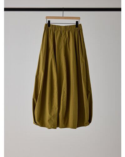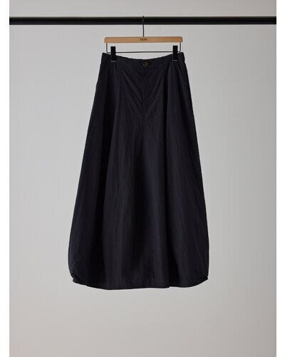 ハリ感のある綿ナイロン素材を使用した、立体的なカービィパターンのボリュームロングスカート。トレンドのバルーンシルエットを思わせるフォルムながら、裏地を用いずパターン構築のみで生み出したボリューム感が最大の魅力です。ガーリーに偏りすぎない洗練されたシルエットで、コンパクトなトップスと合わせることで、全体のバランスを引き締め、スタイルアップも叶える一着です。