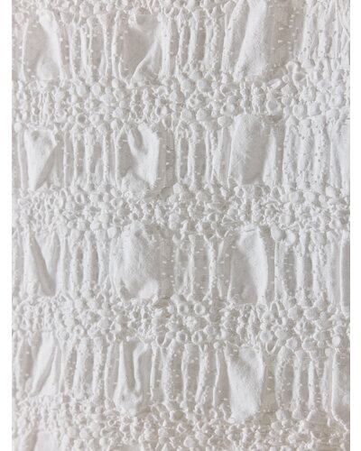 生地にシャーリング加工を施すことで生み出す特有の凹凸と伸縮性がプラスされた生地を使用。