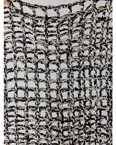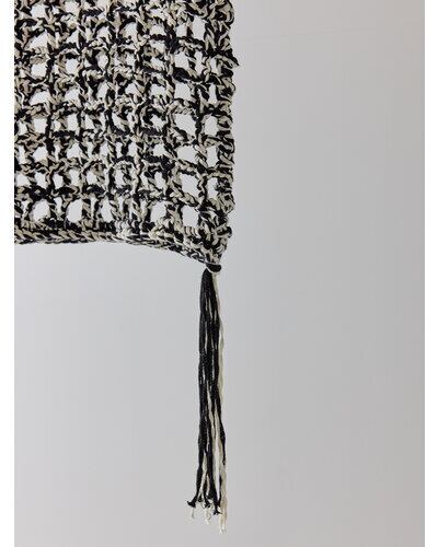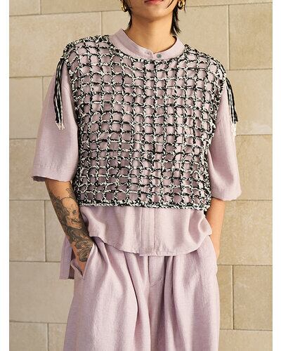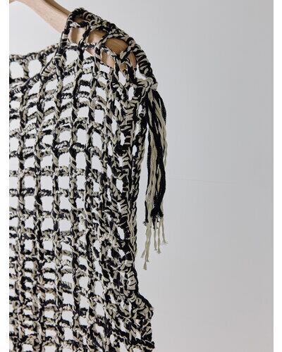 手編みで編み上げたスクエアメッシュ柄のニットトップスです。