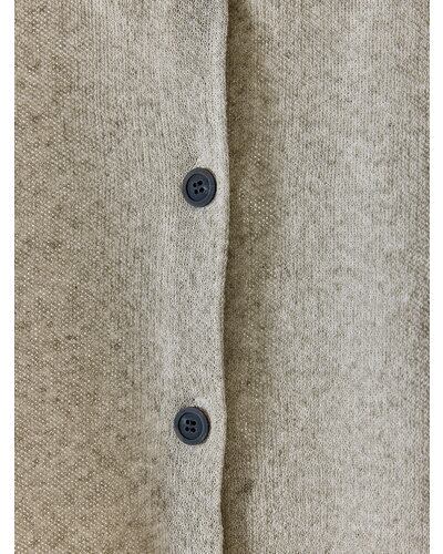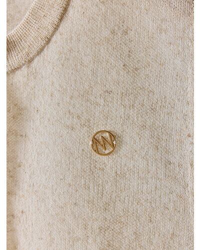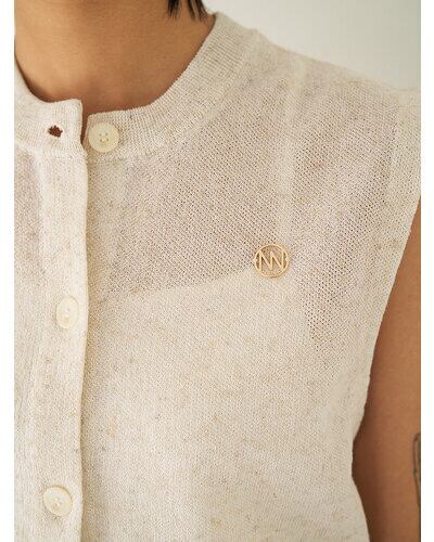 シャリ感のある麻混の糸を使用、透け感がありながらもペラっとしないハリのある編地を採用することで、アイテムの特徴であるコロンとしたフォルムはそのままに夏にも涼しく着用いただけるように改良しました。 前を閉めてトップスとして着用したり、Tシャツやワンピースの上にレイヤードして着用したりと、少しコンパクトなサイズ感がスタイリングを新鮮に見せます。左胸に付けたオリジナルロゴチャームもさりげないポイントです。 脇ポケット付きです。