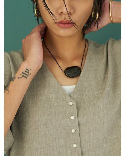 平たいお豆を彷彿させる天然石と本革紐の組み合わせはシンプルながらも一際目を引くミニマルなネックレスとなっております。天然石は職人さんがひとつひとつカットして形を作り、艶が出るよう長時間磨いて仕上げております。スライドビーズ付で簡単に長さ調節が可能なので、ロングにして大人っぽくつけたり、短くチョーカーの様にしてよりミニマルな雰囲気にしても◎先端のチャームはYENNオリジナルパーツとなっており、金具は全てSV925素材を使っているので全体的に上質な印象に。※天然石は天然素材の為、一つ一つ色味やサイズに若干の個体差が生じますので予めご了承下さい。