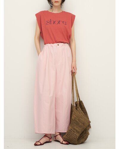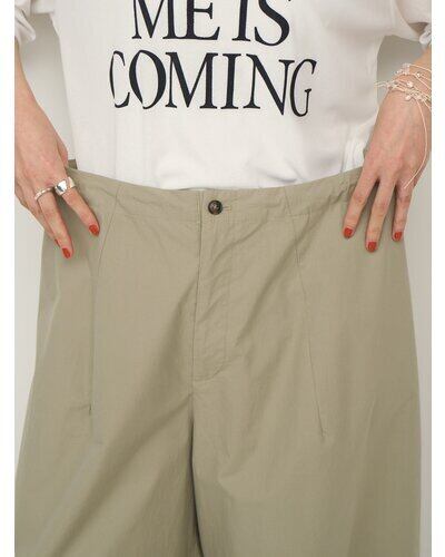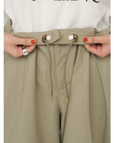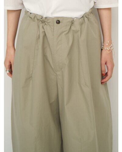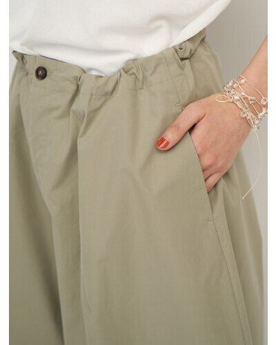 柔らかなカラーが印象的な、ウエストフリー仕様のコクーンパンツ。