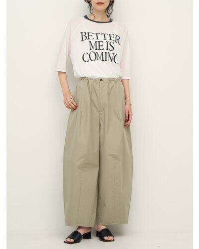 腰まわりに程よいゆとりを持たせ、裾に向かって丸みのあるシルエットが女性らしい抜け感を演出します。