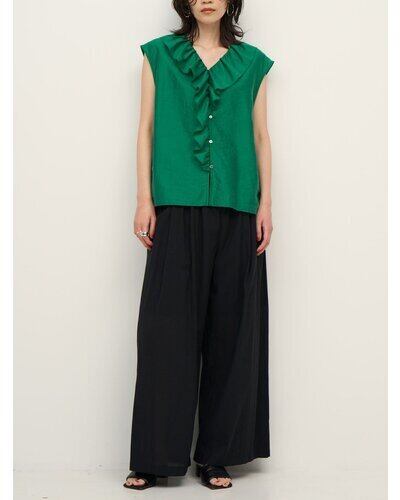 フリルは甘くなりすぎないようバランスにこだわり、大人の方でも取り入れやすいデザインに。フリルの端はピコミシンで仕上げ、さりげない華奢さをプラスしています。