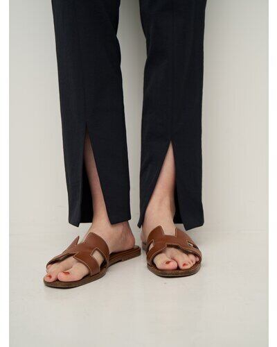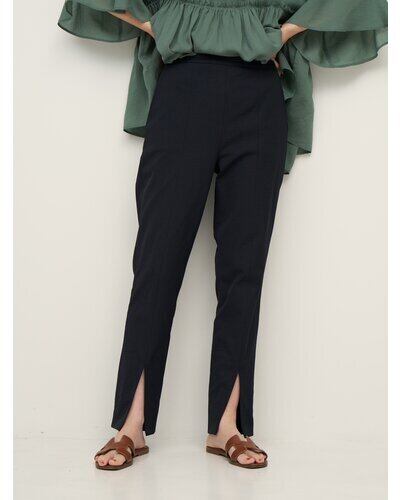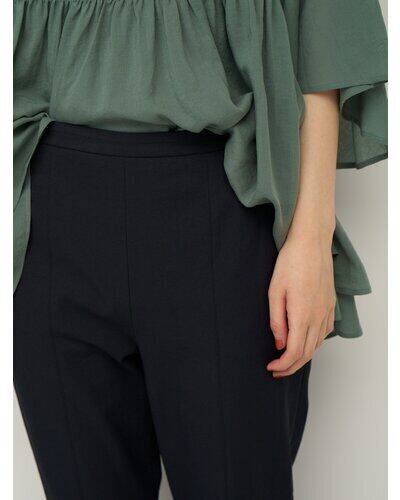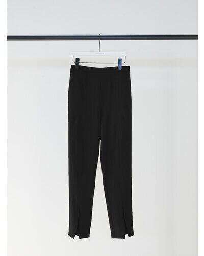 前身頃に入った切り替えが、視覚的に足をまっすぐに見せ、スリットを深めにいれることで、よりスタイルアップ効果のあるパンツになっています。
