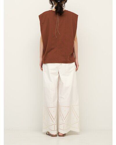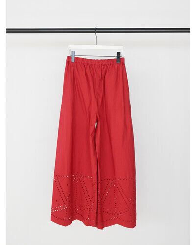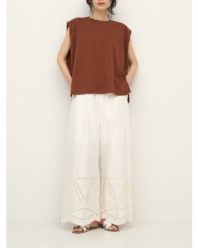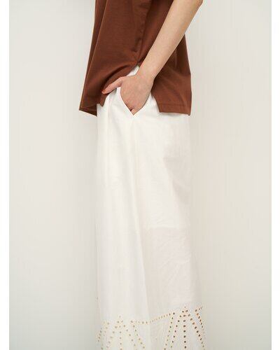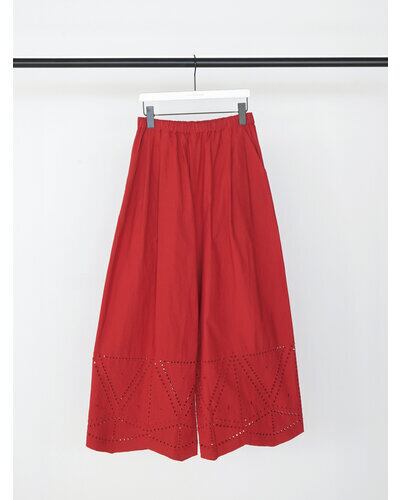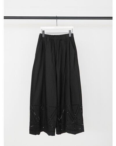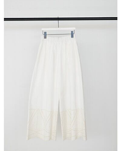 裾に施されたカットワーク刺繍が印象的なストレートワイドパンツです。