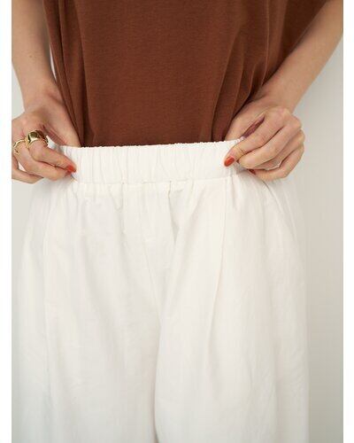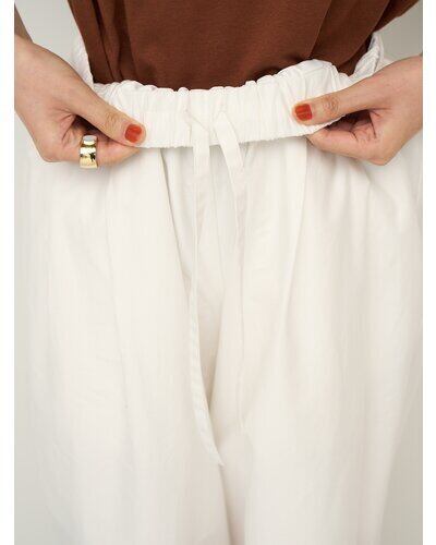 ウエストはゴム仕様でストレスフリー、軽やかな素材感でリラックスした穿き心地を叶えます。