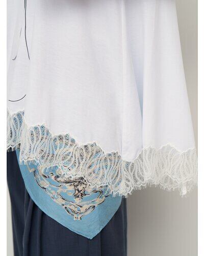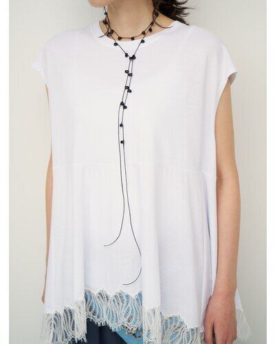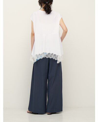 肌触りの良いカットソー素材に、レースを刺繍して組み合わせることで女性らしい華やかさをプラスしています。