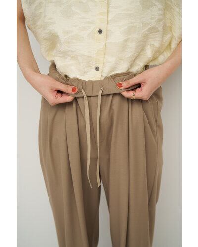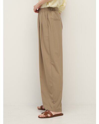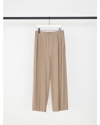 布帛見えするカットソー素材を使用した、2タックのイージーパンツ。ドレープ感のある素材と程よい太さのストレートワイドで、キレイ目なボトムとしても着回しできる便利アイテムです。