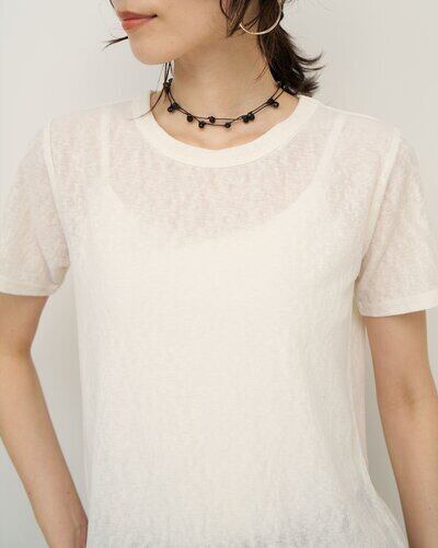 少し透け感のあるソフトタッチな肌触りが魅力のカットソーTシャツに、