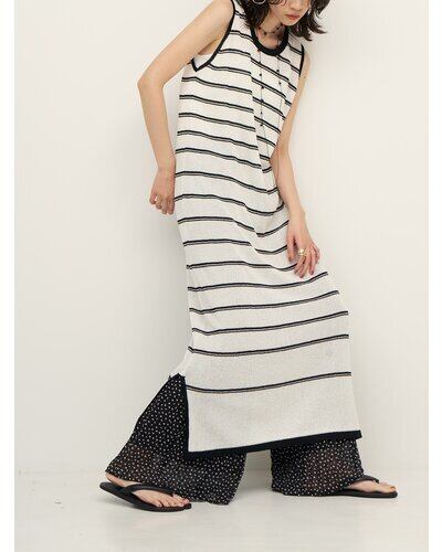 予約販売【 〜chignon〜YENN〜Mewl〜 】[9862-400GS] シアーボーダーニットOP 4月下旬入荷お届け